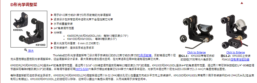 Thorlabs索雷博 KM05DR/M - 右手系光学调整架