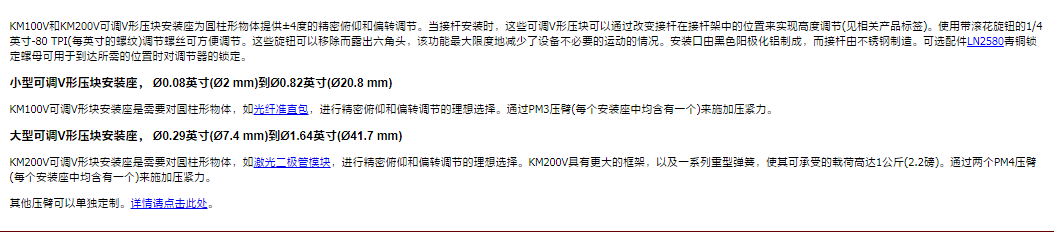 Thorlabs索雷博 KM100V/M - 小型可调V型压块安装座